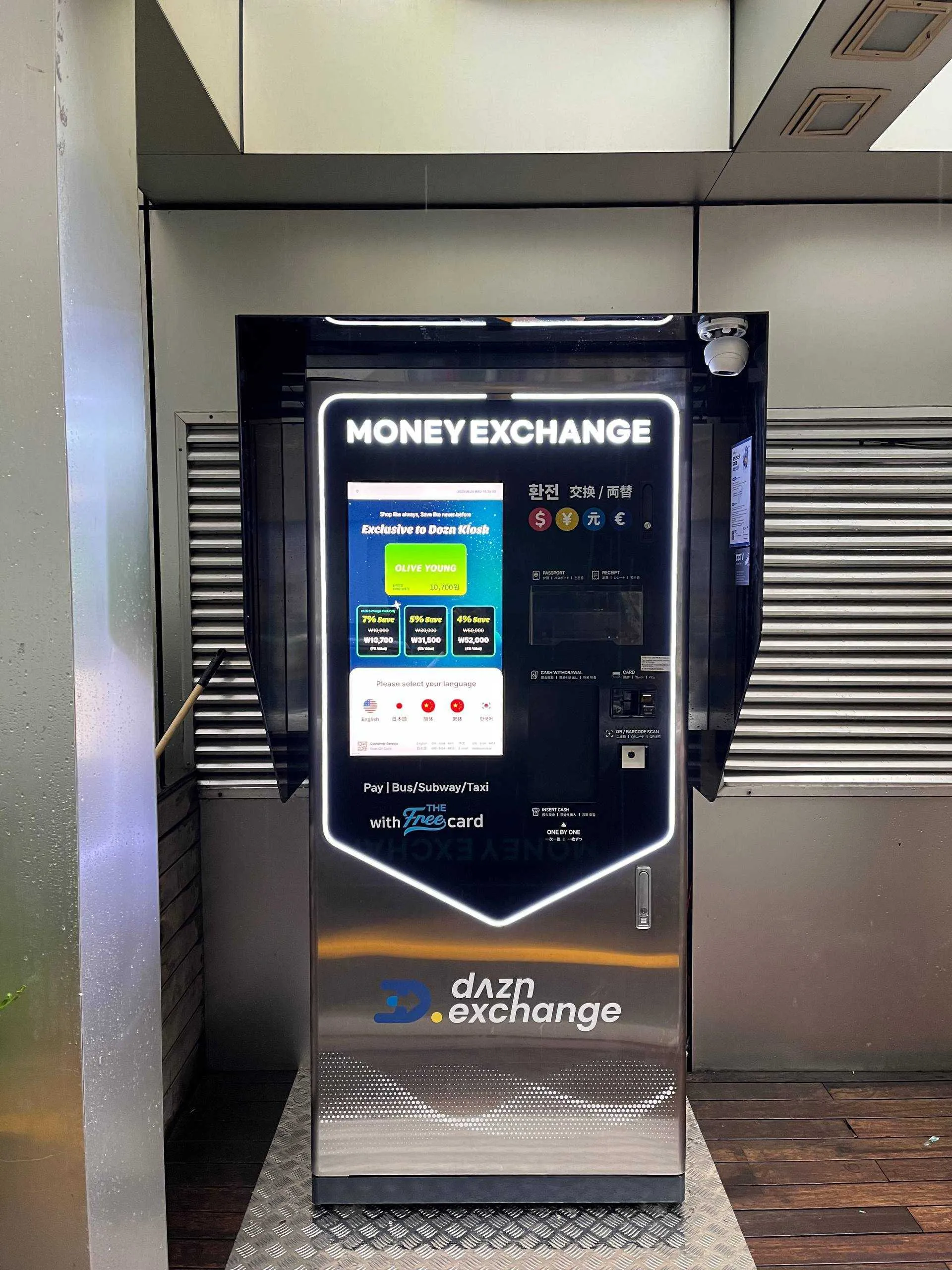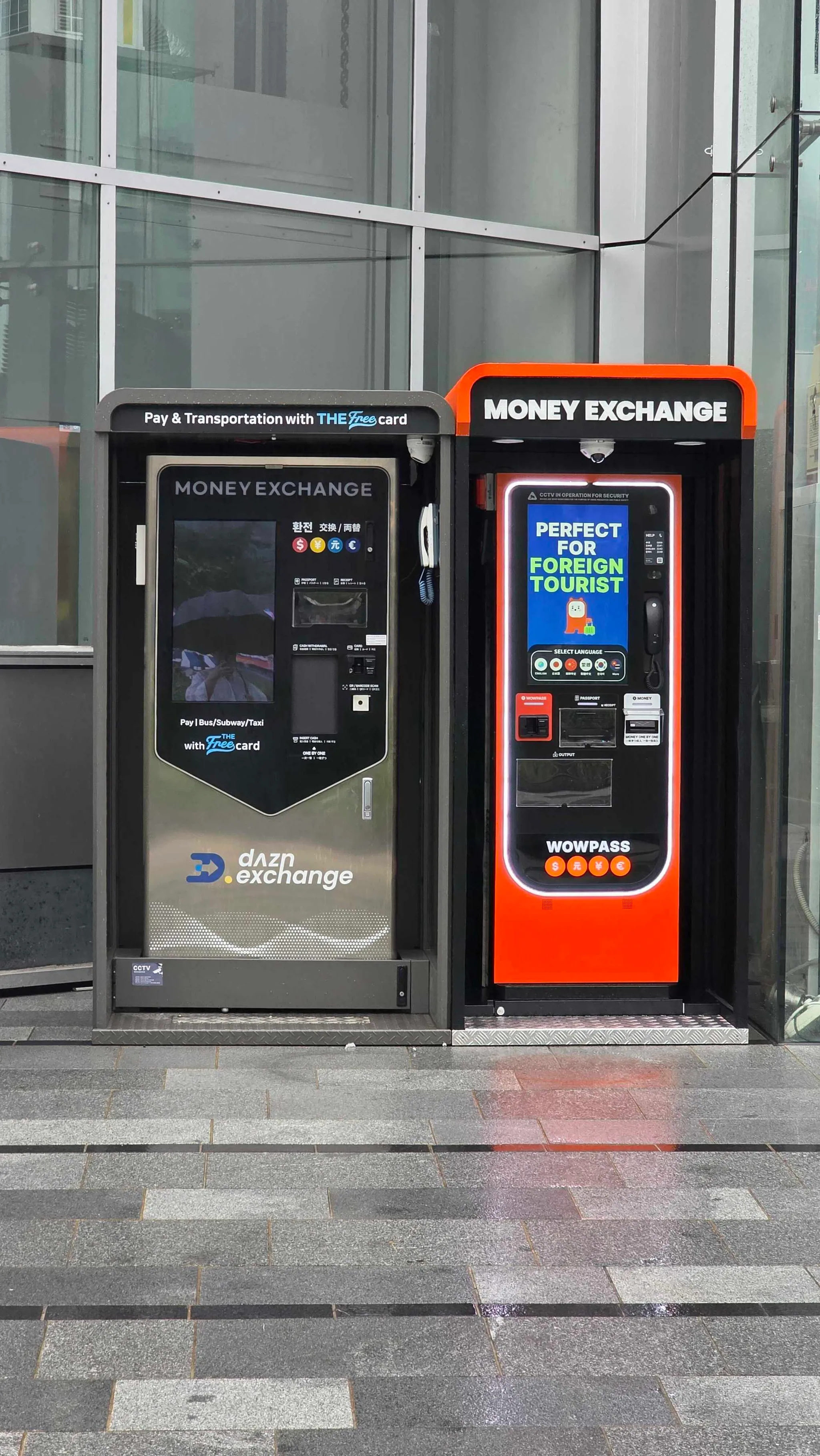 쇼핑몰 외부에 설치된 환전 키오스크 위치를 확인해 보세요.