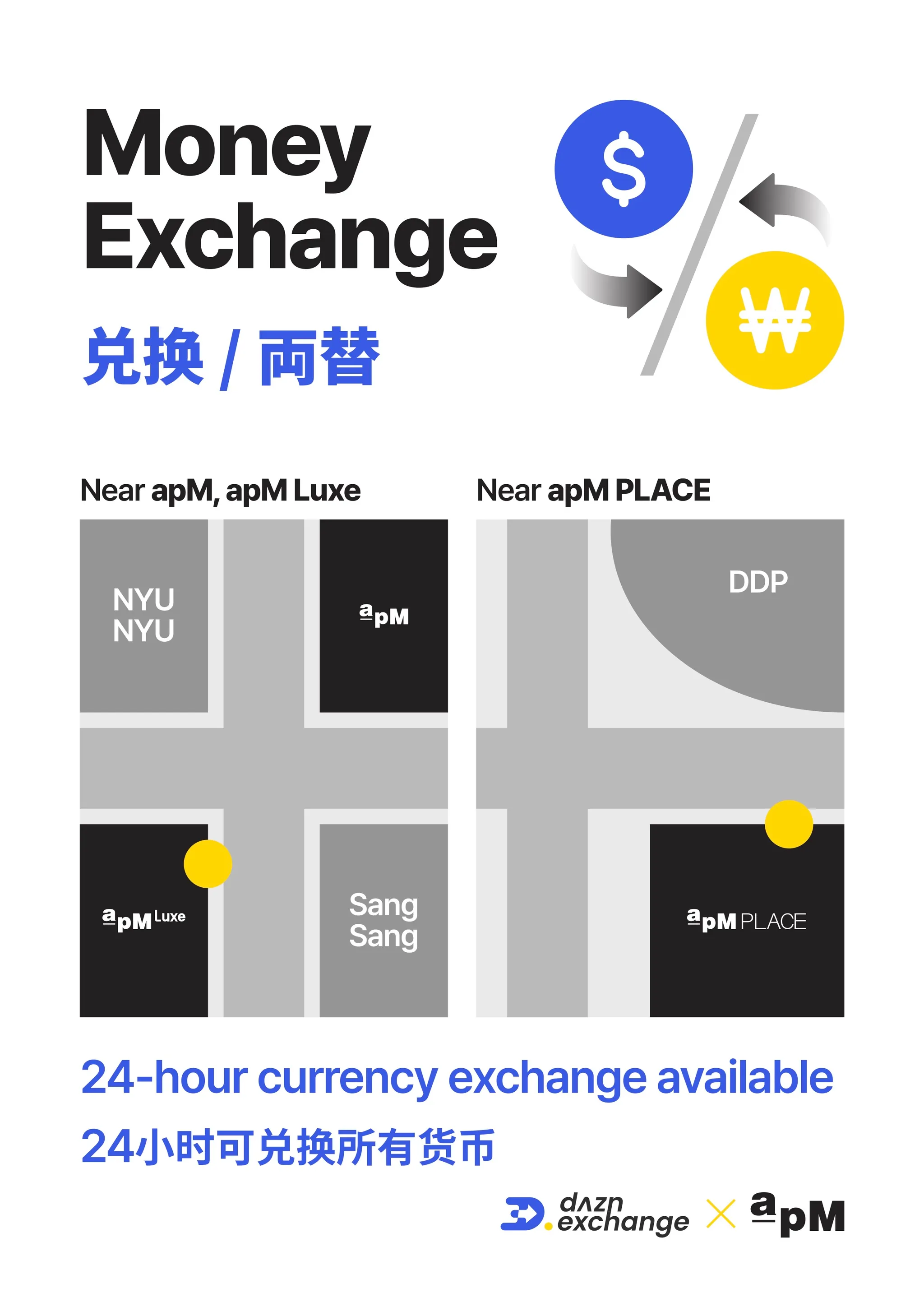apM, apM Luxe 환전 키오스크 위치 / Location